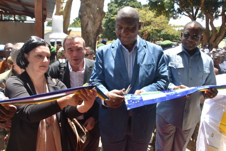 La cérémonie s’est terminée par la coupure par le Président Faustin Archange Touadéra du ruban symbolique des bâtiments de l’armurerie de la garnison de Bouar au Camp Leclerc.