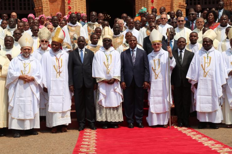 Dimanche dernier 12 janvier la messe eucharistique marquant la clôture de la Conférence Episcopale de Centrafrique a été dite à la Cathédrale Notre Dame Immaculée de Bangui. C’est l’Evêque de Bouar Mgr. Miroslaw Guswa qui a prononcé la messe concélébrée par 7 évêques de Centrafrique. Le Chef de l’Etat centrafricain, Son excellence Pr. Faustin Archange Touadéra a également été présent à l’évènement.