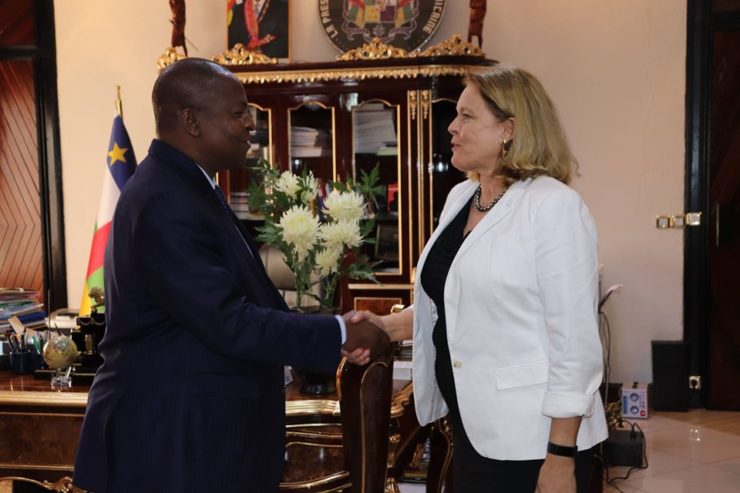 Le Président de la République centrafricaine, Son Excellence Professeur Faustin-Archange Touadéra, a reçu en audience ce 28 janvier 2020 Madame le nouveau Représentant Spécial Adjoint du Secrétaire général des Nations-Unies en Centrafrique, Lizbeth Cullity. Elle était accompagnée par le Représentant Spécial du secrétaire Général des Nations-Unies et Chef de la MINUSCA, Mankeur Diaye.