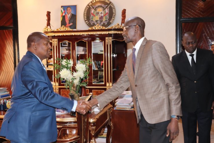 Le Président de la République, Son Excellence le Pr Faustin Archange TOUADERA a reçu en audience ce mercredi 05 février 2020 une délégation du Fonds Mondial pour la Santé, conduite par son gestionnaire, M. Noah ZAHROBSKY.