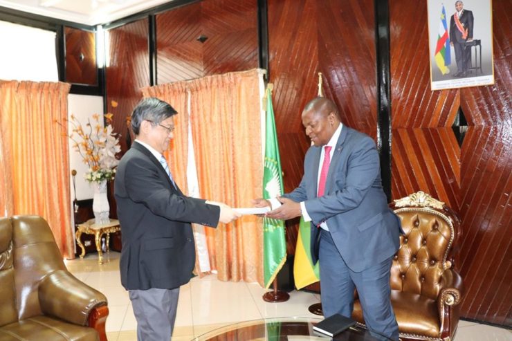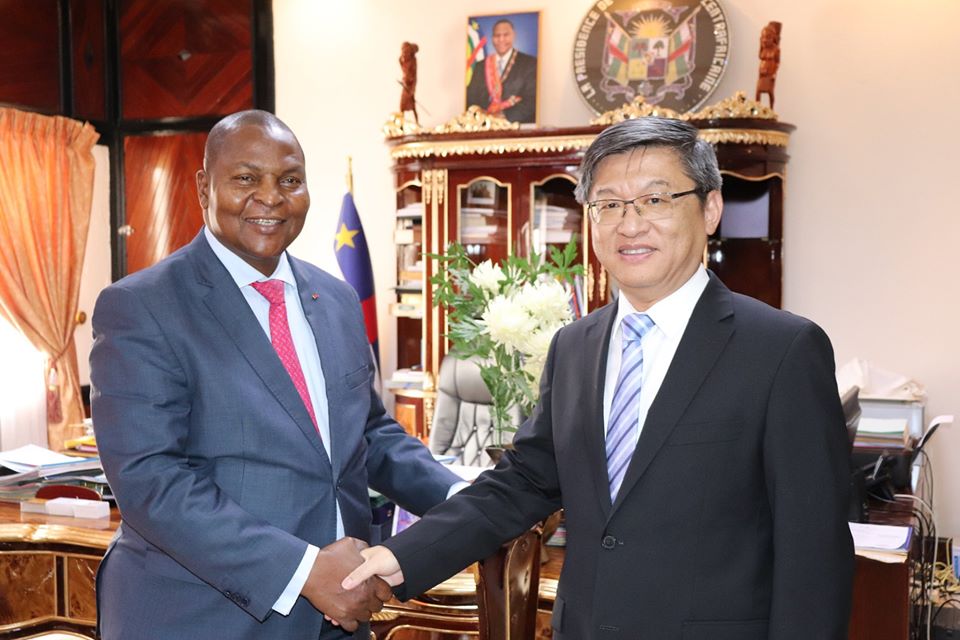 Le Président de la République, Faustin Archange Toudéra, a accordé une audience ce mardi 3 mars 2020, en son cabinet à la Présidence de la République, à l’Ambassadeur Extraordinaire et plénipotentiaire de la République Populaire de Chine, Chen Dong.