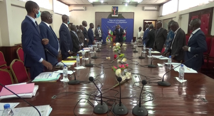 La Salle du Conseil de Cabinet de la Présidence de la République a servi de cadre à la tenue d’une réunion stratégique entre le Président de la République, Son Excellence Pr Faustin Archange TOUADERA, les responsables du Ministère de l’Intérieur et la Sécurité Publique et ceux du Ministère des Finances.