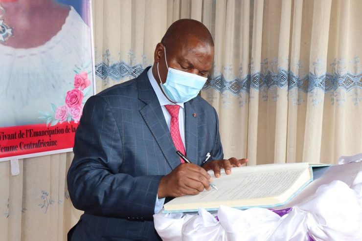 Le Président de la République, Faustin Archange TOUADERA, a signé le mardi 21 juillet 2020, dans l’enceinte de l’OFCA, le livre de condoléances en la mémoire de Maman Marthe NGOMBE, décédée le 10 juillet 2020 à Bangui.