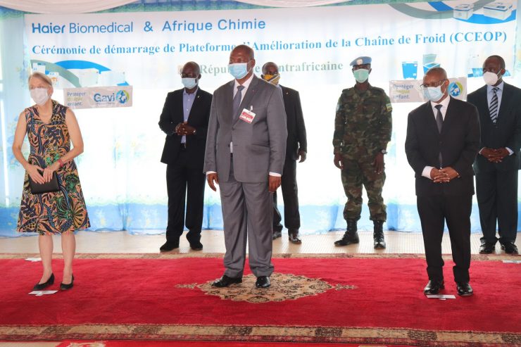 C’est avec un sentiment de joie et de gratitude que je prends la parole à cette heureuse occasion marquant la remise ce jour de 322 réfrigérateurs solaires, dons de l’Alliance Mondiale pour les Vaccins et l’Immunisation (GAVI) à la République Centrafricaine et de 8 baleinières gracieusement offertes par la Fondation Bill et Melinda GATES.