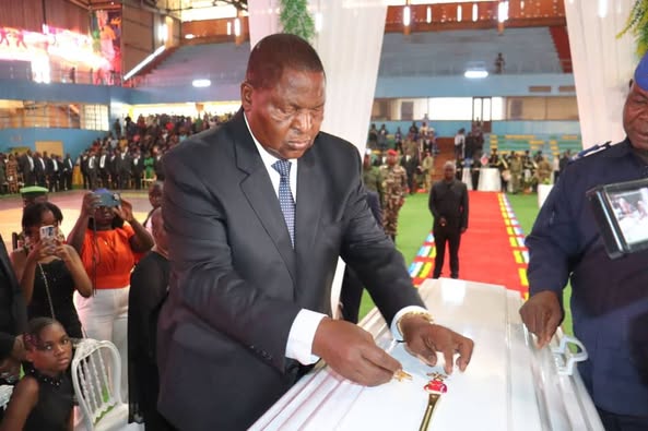 Le Président de la République Faustin Archange TOUADÉRA a rendu dans la matinée de ce samedi 06 septembre 2025 au Stade Omnisport de Bangui, un dernier hommage à Monsieur Robert NGOKI de GACOA SIV et Président de la Chambre de Commerce, de l’ Industrie et des Mines, décédé le 11 août 2025 à Bangui.