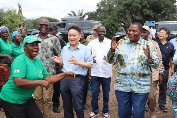 Dans le cadre de ce déplacement, le Chef de l’État et son Hôte ont procédé ce samedi 06 septembre, à une visite de terrain sur le site des travaux de SAEMAUL au village PATA dans la Commune de Damara, l’un des trois villages pilotes retenus pour la mise en œuvre du Projet d’Autonomisation des Communautés Rurales.