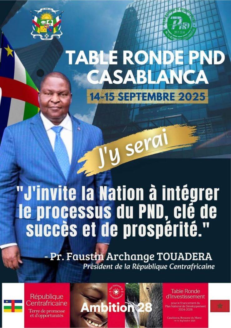 Ce dimanche 14 septembre 2025 restera marqué dans les annales de la République Centrafricaine. Le Président Faustin Archange TOUADERA et l’ensemble de son Gouvernement présentent ce jour devant les Partenaires Techniques et Financiers et les Investisseurs du monde entier, leur Plan National de Développement couvrant la période de 2024-2028, en vue de susciter des intérêts et, obtenir des intentions de financements en faveur dudit Plan.