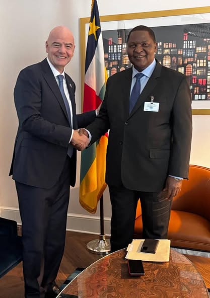 En marge des travaux de la 80e Assemblée Générale des Nations-Unies qui se déroulent à New York, le Président de la République Faustin Archnge TOUADÉRA a accordé une audience ce lundi 22 septembre 2025 à l’Hôtel SONESTA, au Président de la Fédération Internationale de Football (FIFA), Monsieur Gianni Infantino.