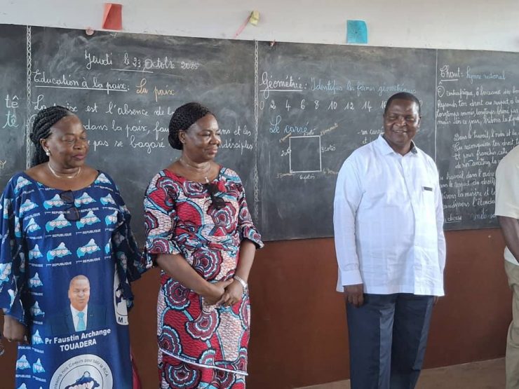 Le Couple Présidentiel Tina et Faustin Archange TOUADÉRA poursuit son opération 1 sac pour 1 élève dans la commune de Damara.