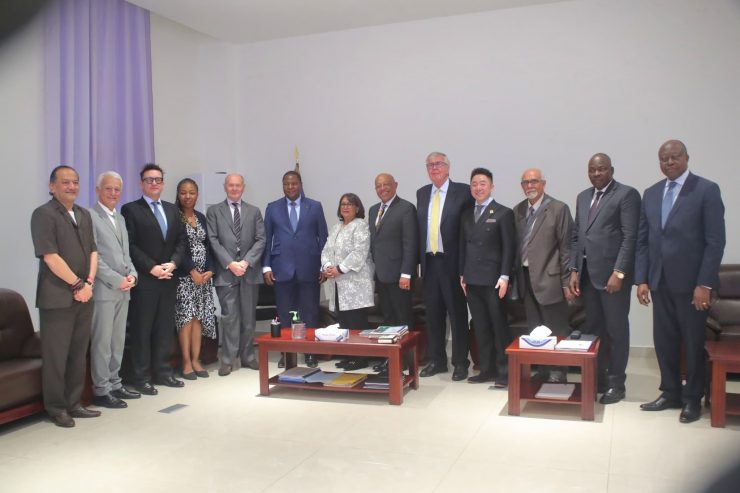 La délégation britannique, conduite par Sir John PEACE a été accueillie chaleureusement par le Professeur Faustin Archange TOUADÉRA, réaffirmant ainsi son engagement à renforcer la coopération économique entre la République Centrafricaine et le Royaume-Uni.