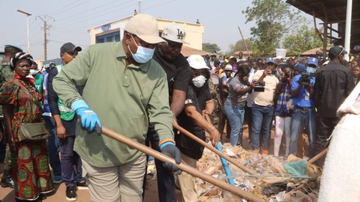 Le Chef de l’État a profité de l’occasion pour féliciter et encourager tous les Centrafricains de Bangui et des villes de province qui consacrent de leurs temps chaque samedi pour nettoyer leur environnement respectif.