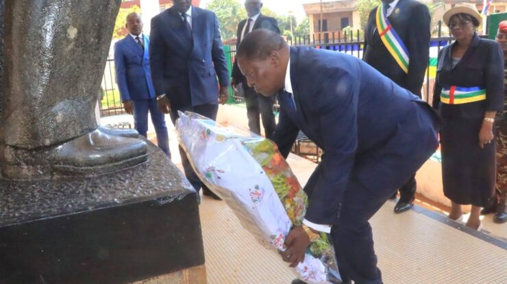 Le Président de la République, Faustin Archange TOUADÉRA, accompagné de plusieurs personnalités nationales, a honoré de sa présence cette commémoration d’une importance capitale. À cette occasion, il s’est recueilli devant le Monument Barthélémy BOGANDA, situé dans le 1er arrondissement de Bangui et a déposé des gerbes de fleurs en signe de reconnaissance envers celui qui a fondé la République et qui a posé les jalons de l’indépendance du pays.